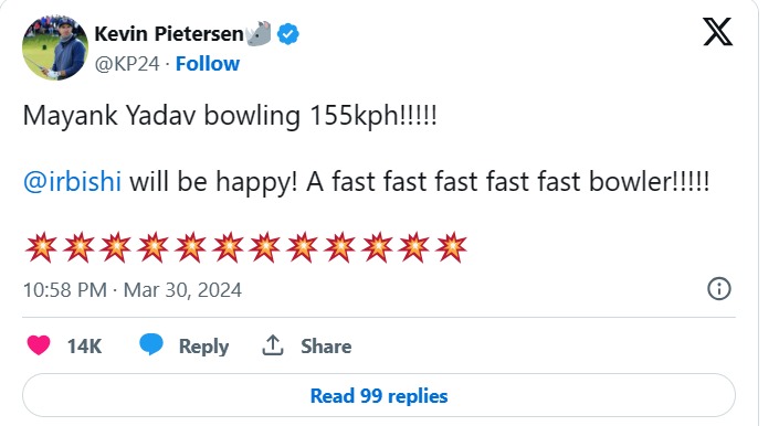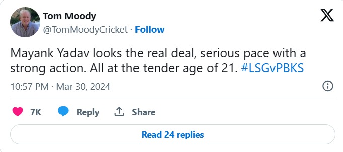 Lucknow Super Giants has introduced Lucknow express (Mayank Yadav) to IPL 2024 against Punjab kings and their batter were shocked to see such furious pace, this lad is bowling over 150 just for fun.